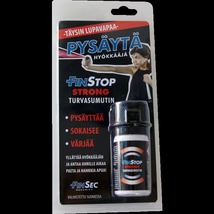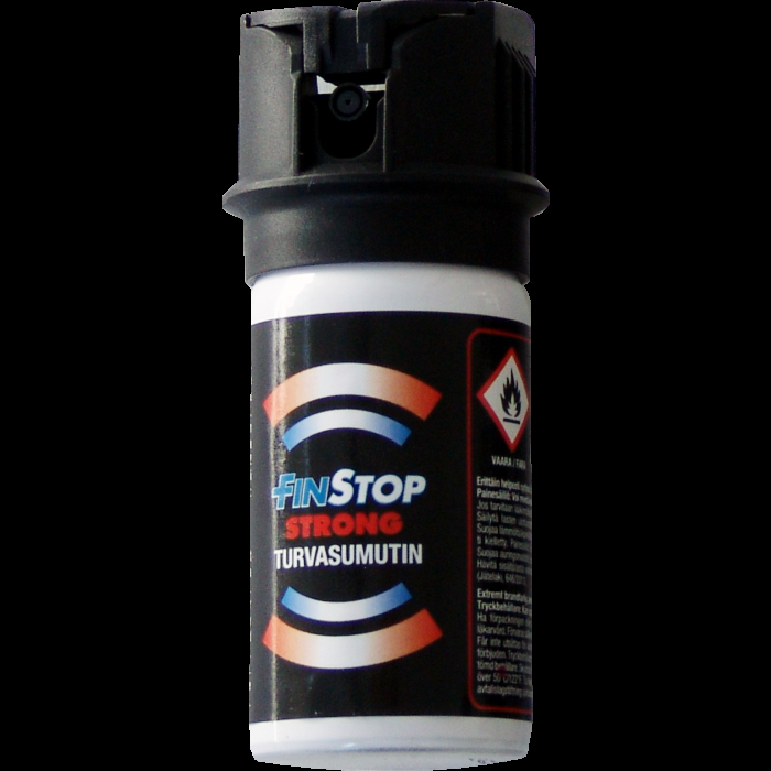 FinStop Strong valmistetaan täsmälleen samoilla valmistusprosesseilla kuin viranomaissumuttimetkin. Ammattitason turvasuuttimen ansiosta sumutin ei laukea taskussa tahattomasti ja sumutin kulkee helposti mukana. FinStop Strong on 2 cm matalampi kuin Turvakerroin -turvasumutin mutta molemmissa on sama tilavuus tehoaineita. Suuttimen rakenne varmistaa että sumutuskuvio on ihanteellinen ja ettei suutin tukkeudu kun sumutinta kannetaan taskussa tai käsilaukussa. Erinomainen lahjaidea tyylikkäässä pakkauksessa.